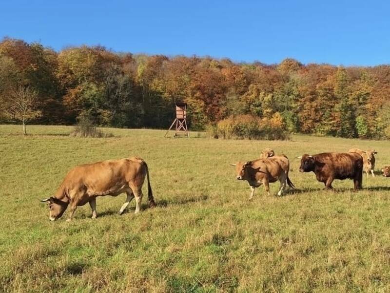 Geschlachtet wird eine 8 Jahre alte Mutterkuh. Die Kuh ist eine reinrassige Aubrac-Kuh und hat uns während ihres Lebens 5 tolle Kälber auf der Weide geboren.